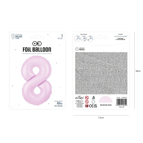 Balon foliowy cyfra 8 liliowy matowy 100cm